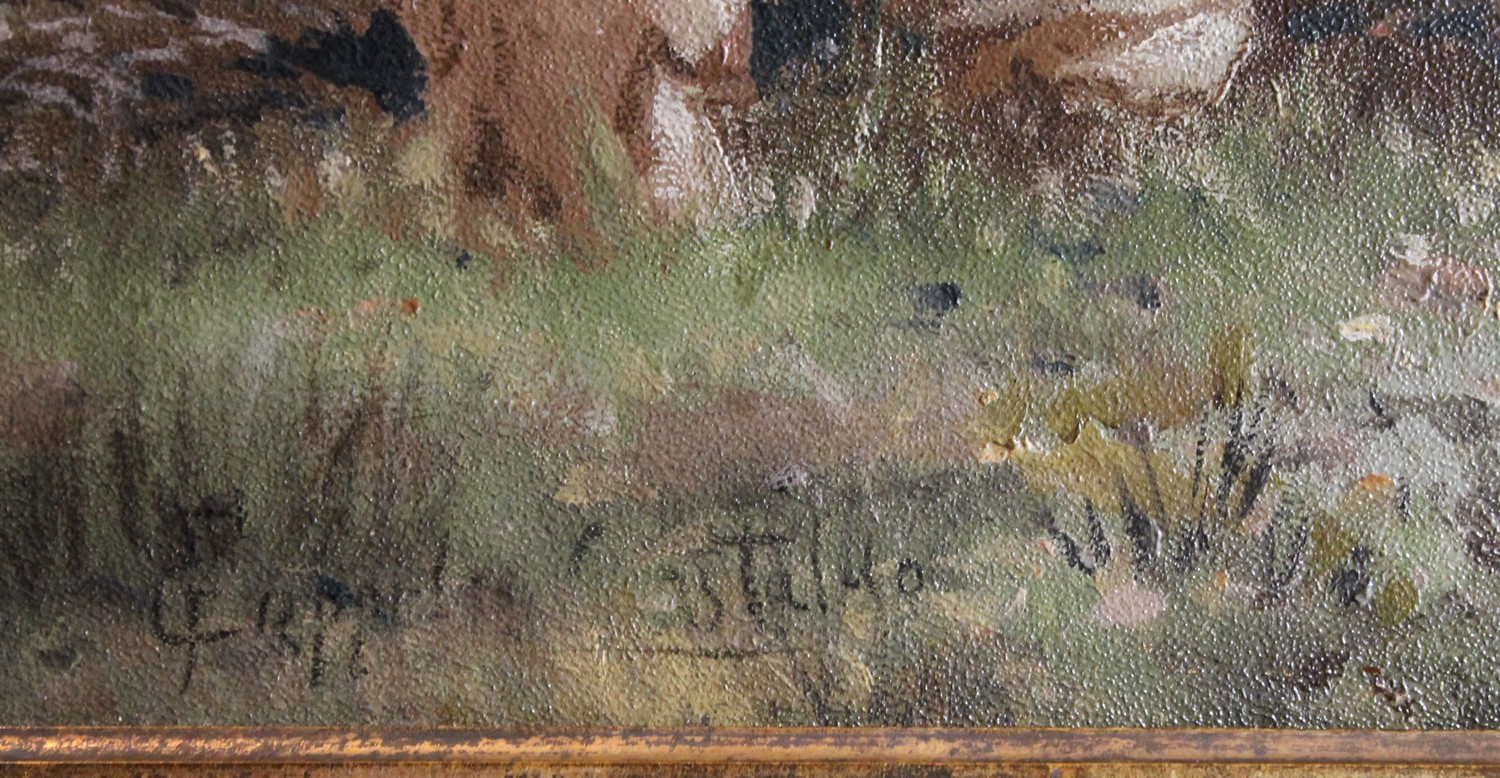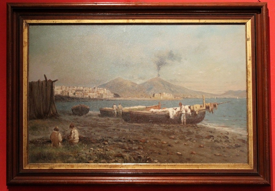 Francesco Coppola Castaldo (Naples 1847-1916) studied at the Academy of Fine Arts in Naples, under the guidance of Giuseppe Mancinelli and Domenico Morelli. There he knew his companions Stanislao Sidoti and Gustavo Mancinelli, son of one of his professor. Very early and very prolific, he made his debut at the "Salvator Rosa" Promoter in Naples in 1863, maintaining a continuous participation, up to the 1911 exhibition. He preferably painted in oil, tempera or gouache and was a renowned landscape painter. He taught painting at the municipal high school of Naples and was also an honorary professor at the Academy where he had studied. His works "Un boschetto", "At the decline of the day" and "On the shore of the sea", exhibited at the exhibitions of the Promoter of 1872, 1877 and 1881, were purchased by the Kings of Italy Vittorio Emanuele II and Umberto I. The painter's favorite subjects were views of Naples and neighboring areas, rural scenes and more rarely scenes of religious subjects, inspired by the work of Morelli whose studio he frequented. In addition to the exhibitions of the Neapolitan Promoter, it exhibits an exhibition in Genoa, Milan, Turin, Rome and Florence. In 1870 he participated - together with other painters active in Naples, including Giuseppe Boschetto, Camillo Miola, Giuseppe De Nigris - in the German Gallery of New Bond Street in London, with two works: "A scene near Naples" and "An Afternoon "