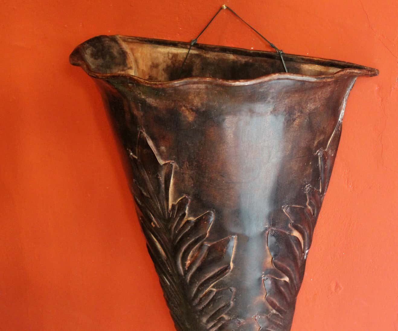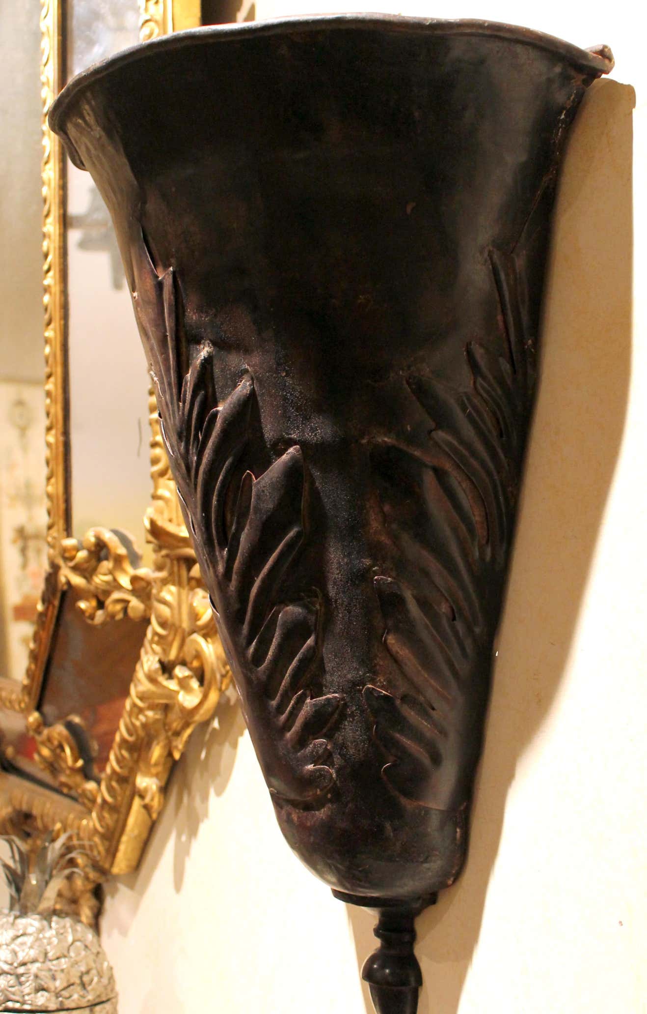 French Art Nouveau Brown Iron Tole Paint Wall Jardinieres or Big Scale Sconces